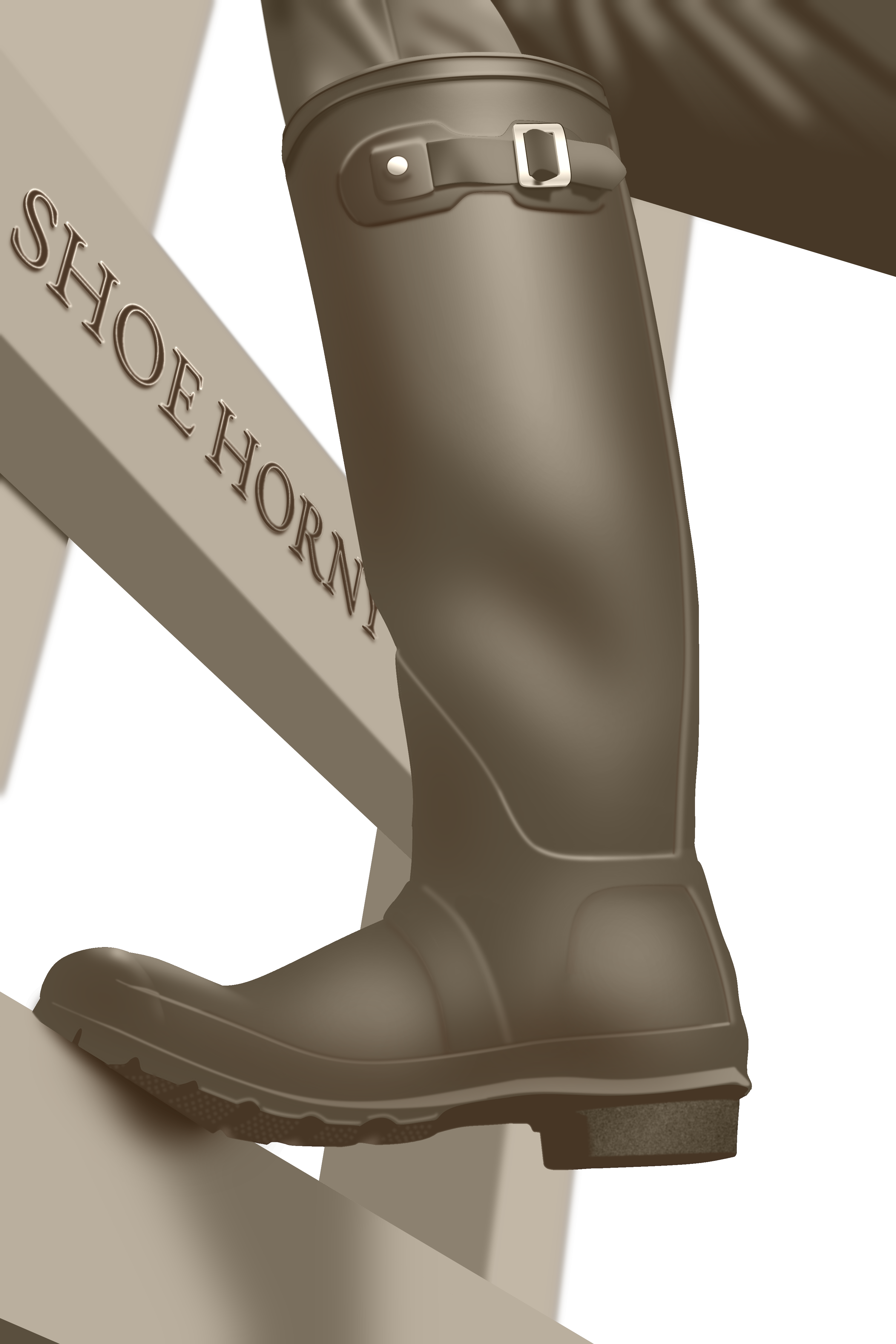 Derrick nodded ruefully, his weary legs beginning to quiver in his stubbornly fixed boots. He watched with curiosity as the man removed his backpack and opened it. “Lucky for you,” he continued brightly, “I came prepared for some fun, too!” From the bag he produced the tallest pair of rubber boots Derrick had ever seen. They were a shiny brown and accented with cream yellow bands at the outsole and rim.